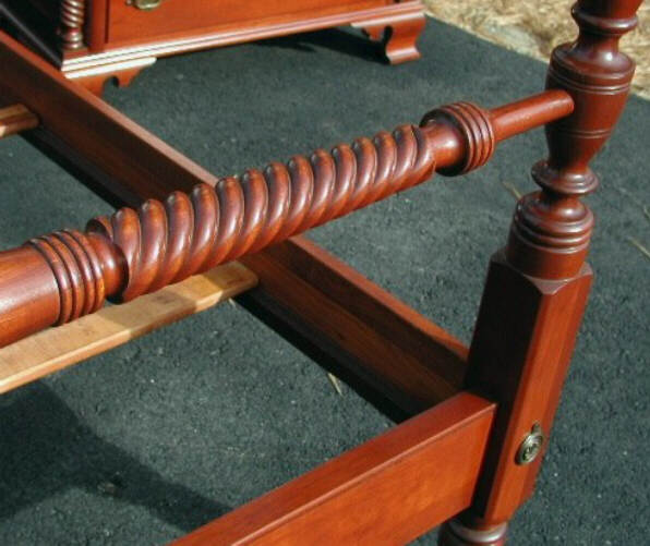 This photo shows the rope detail on same bed. Note that on the bed, the rope motif has a slight taper.