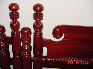 This is the detail on the headboard of a Willett bed owned by Rebecca Beatty. Rebecca has now verified from catalog information that this was headboard was from the "Marblehead" collection, and is quite different in design from the rope motif beds. (photo courtesy Rebecca Beatty)