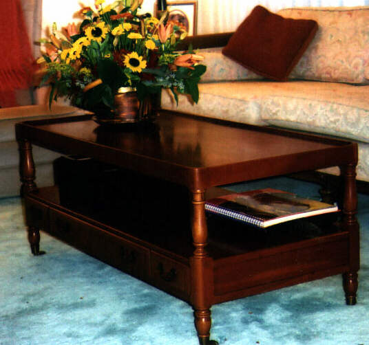 This is a Willett Coffee table owned by Rebecca Beatty. It is quite different in design, with a double shelf (photo courtesy Rebecca Beatty)