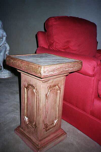 given the same painting treatment as the pedestal base. Finally, the top was glued to the pedestal base with liquid