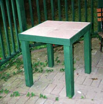 The table consists of a 2 x 2 foot sheet of 3/4 inch plywood. The legs