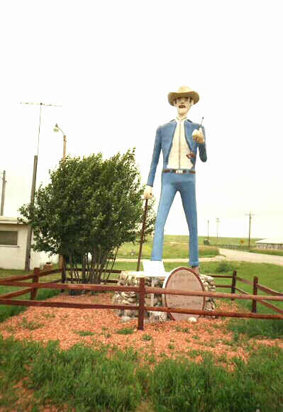 statue of Cowboy Earl greets visitors to New Town arriving from the