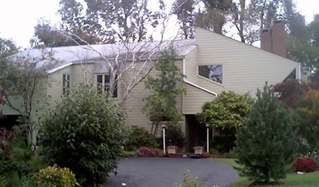 roofs, with cedar shakes extending downward on some of the vertical surfaces.