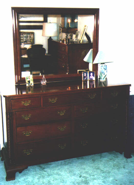This is a Willett bedroom set for sale on e-bay January, 2002. The set is similar to others illustrated here, tho the footboard on the bed is slightly different from the bed illustrated above.